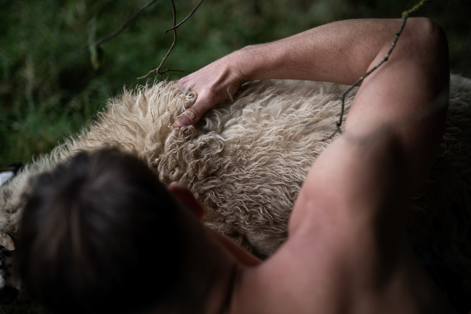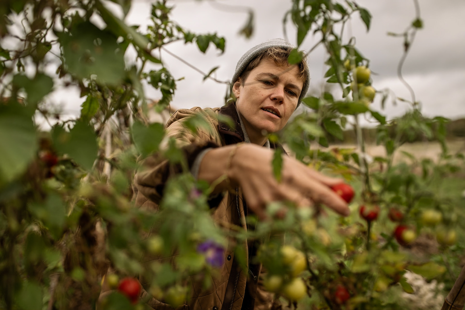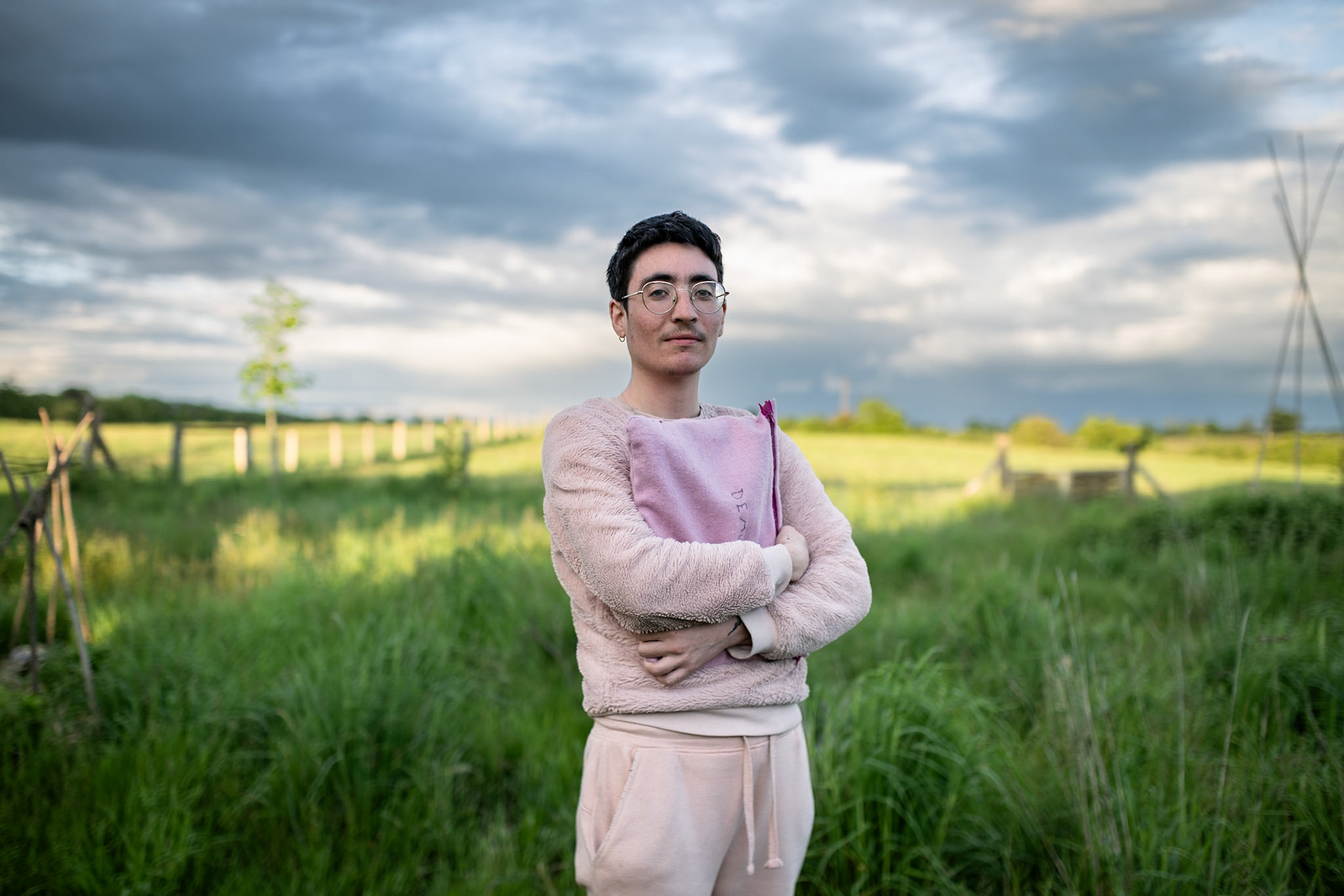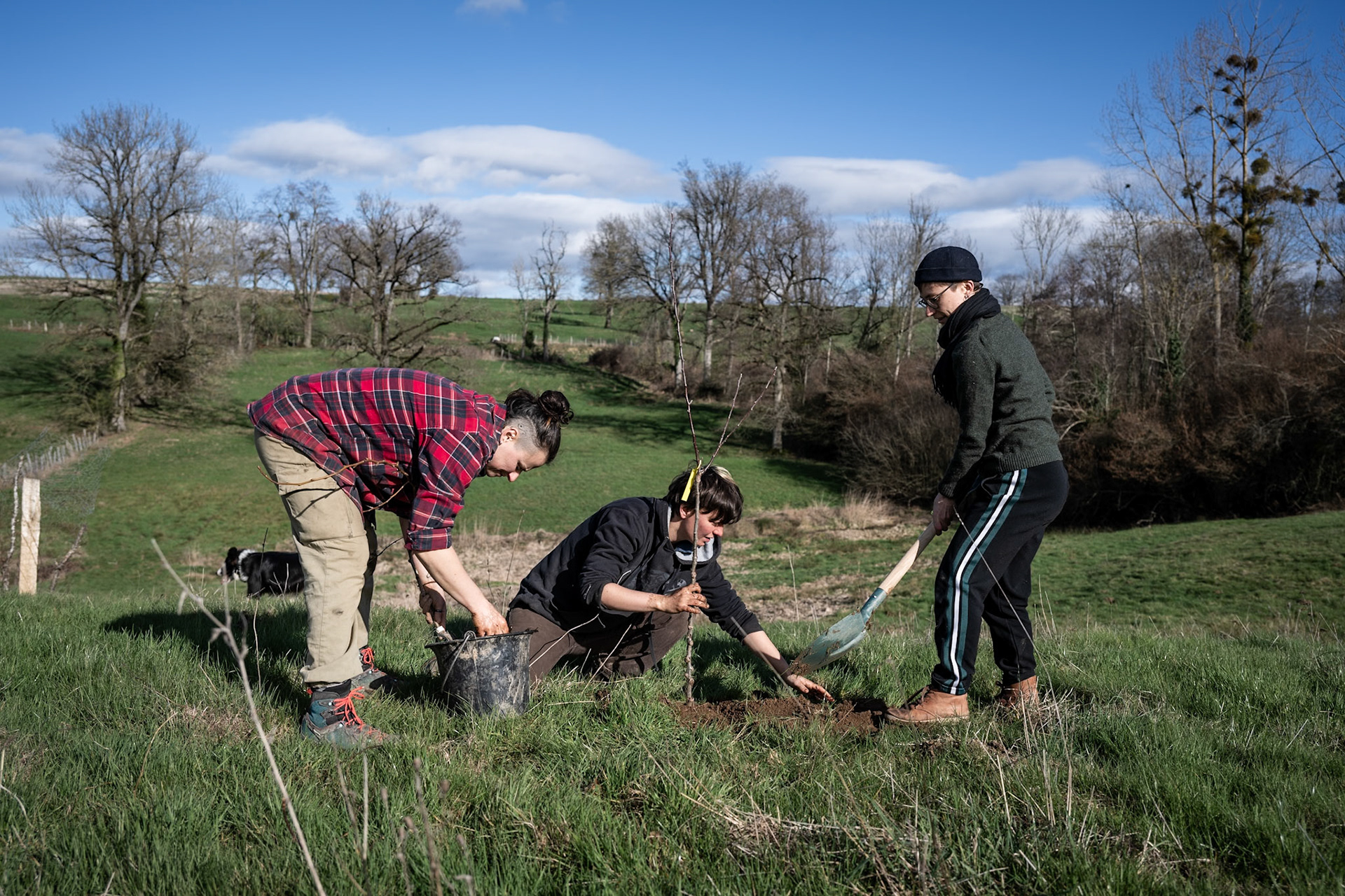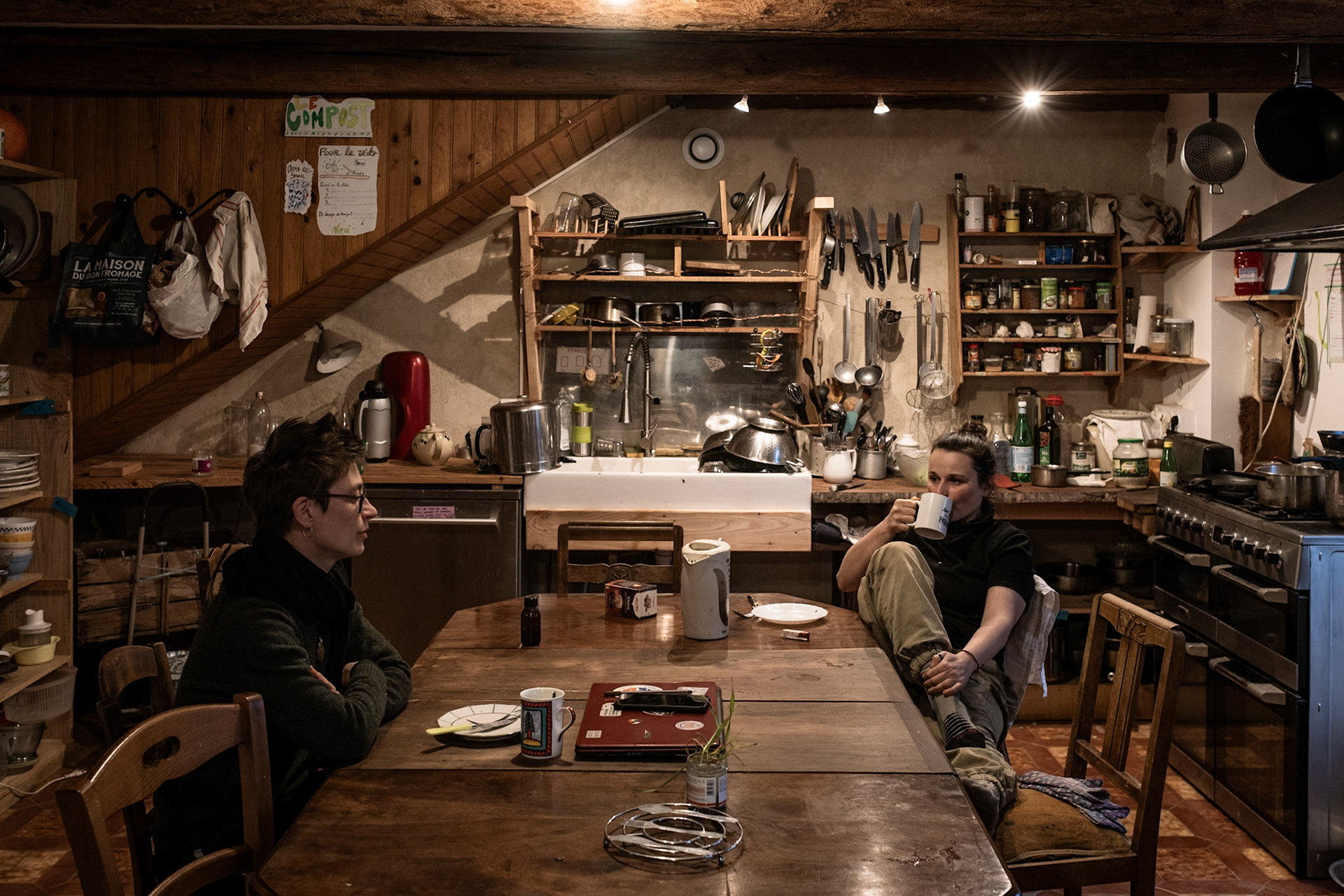 C’est autour de Boubou, ici avec sa compagne, Popi, que s’est créée la ferme de la Petite Mouliche, à Cunlhat (Puy-de-Dôme), en 2023. Le collectif de huit personnes souhaitait « produire une alimentation saine et durable ». Boubou, fille d’agriculteur·ices, qui avait éprouvé le besoin de partir jusqu’en Californie pour « s’épanouir en tant que lesbienne », entend aujourd’hui démontrer qu’il est possible de « vivre là où sont ses racines, en étant qui on est ».