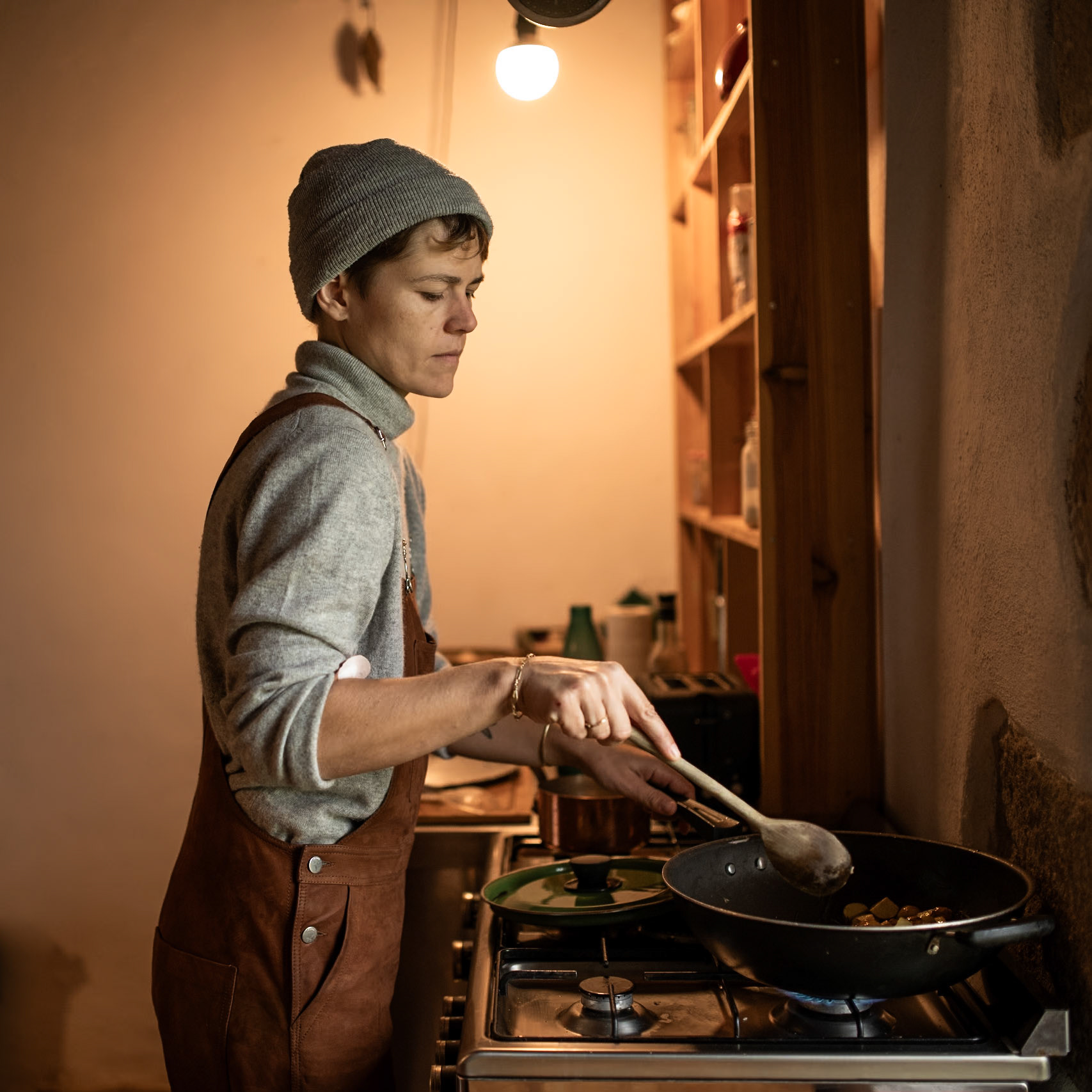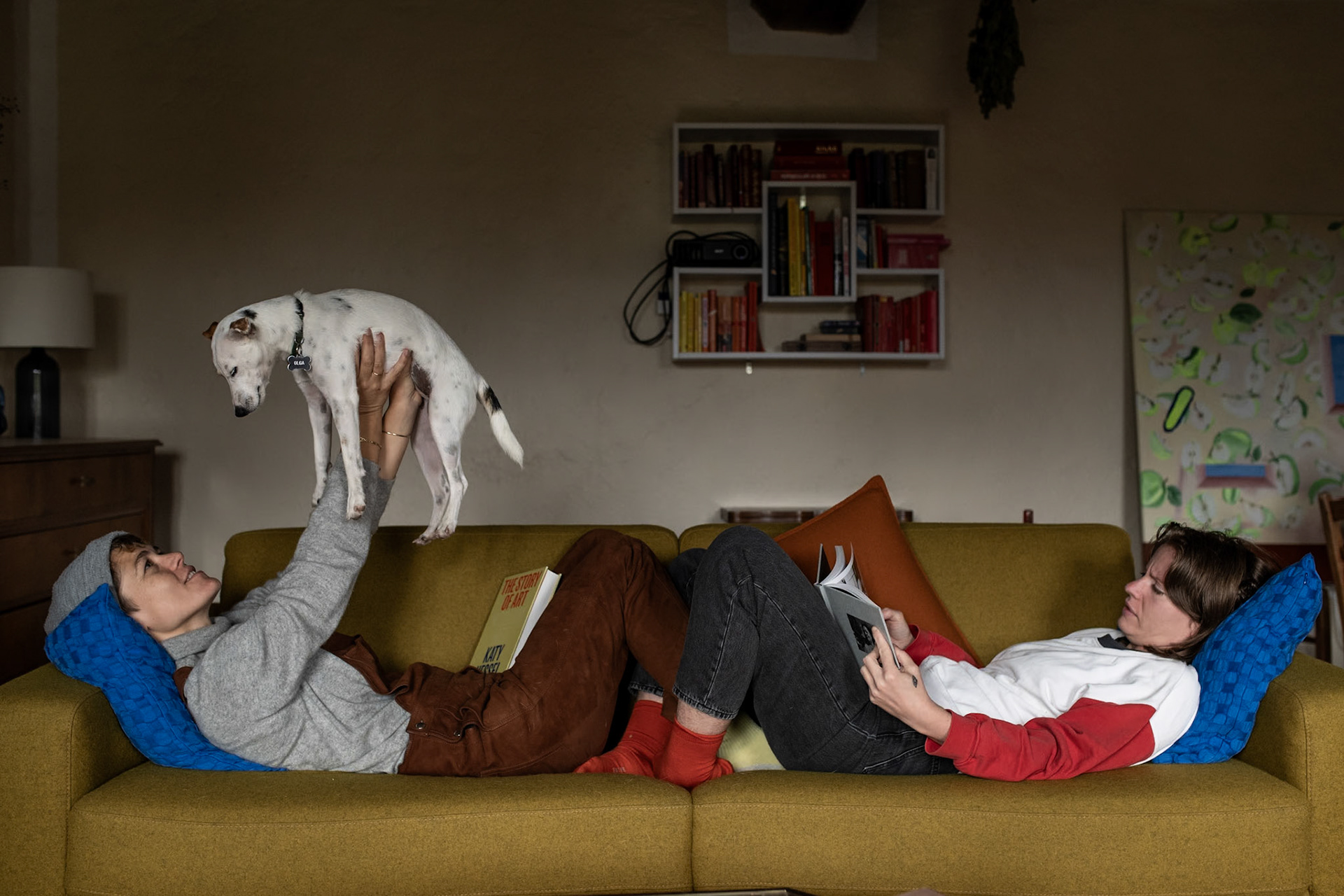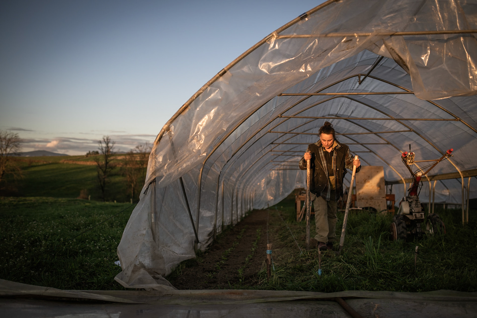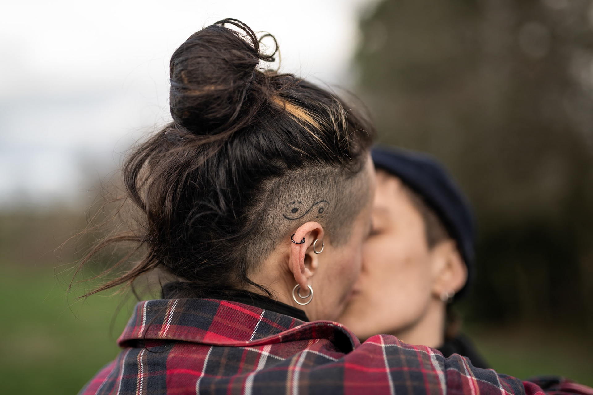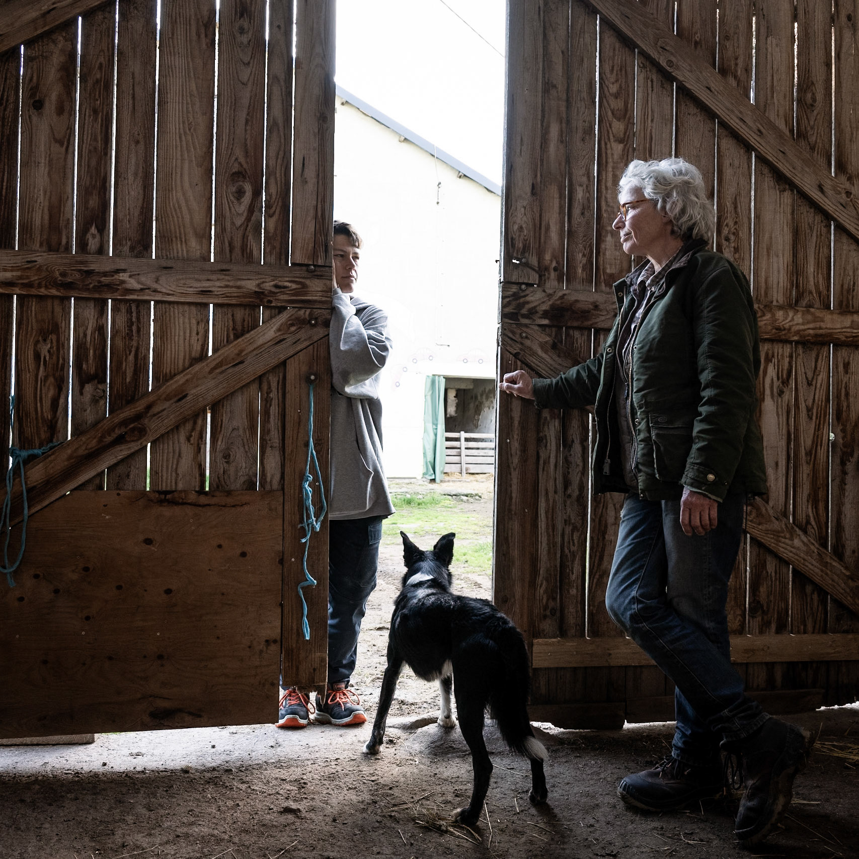 C’est autour de Boubou, ici avec sa compagne, Popi, que s’est créée la ferme de la Petite Mouliche, à Cunlhat (Puy-de-Dôme), en 2023. Le collectif de huit personnes souhaitait « produire une alimentation saine et durable ». Boubou, fille d’agriculteur·ices, qui avait éprouvé le besoin de partir jusqu’en Californie pour « s’épanouir en tant que lesbienne », entend aujourd’hui démontrer qu’il est possible de « vivre là où sont ses racines, en étant qui on est ».