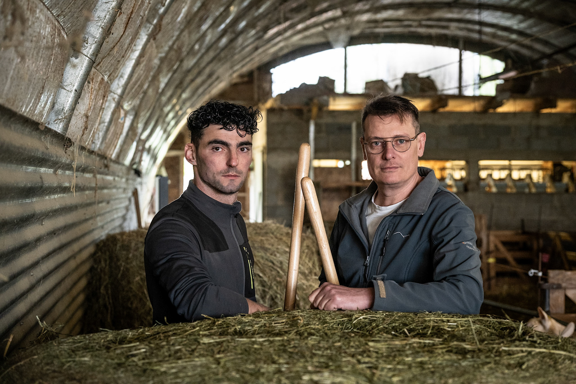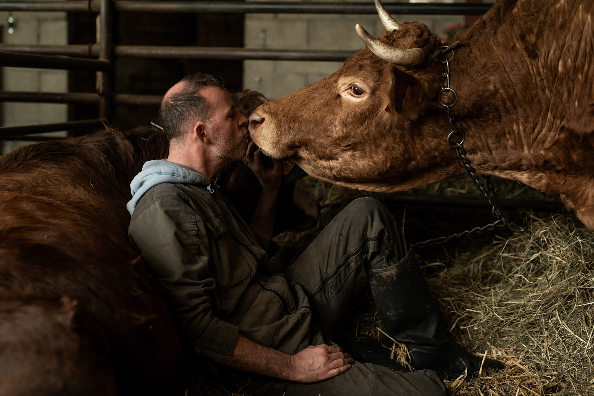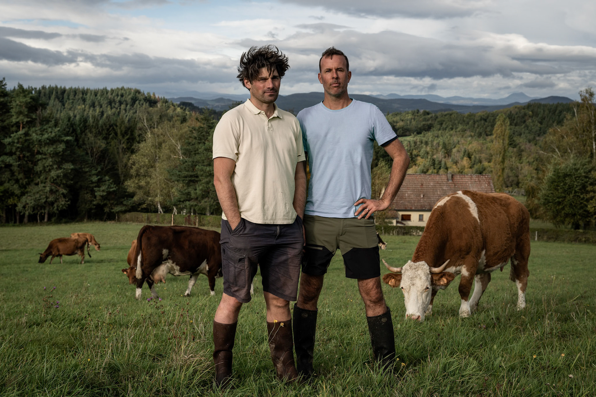 Patrice (à gauche), et François, en couple depuis dix-sept ans et mariés depuis trois ans, sont à la tête d’une exploitation bio de 60 vaches laitières à Auzelles (Puy-de-Dôme). Le premier est fils d’agriculteur·ices et s’est installé à proximité de la ferme parentale. Le second, ingénieur de formation, a grandi en ville. C’est leur amour pour les bovins et la nature qui les a réunis et leur a permis de surmonter de multiples obstacles. D’abord la dureté du métier, « un mode de vie qui te coupe de ton réseau social », où « tu côtoies la vie, la mort, tous les jours », mais aussi le regard porté sur eux : « Quand tu es gay et que, en plus, l’un des deux n’est pas du milieu, tu n’as jamais fini de faire tes preuves », relève François. Leur différence, c’est leur « sensibilité » : « On travaille avec les animaux, pas contre. »