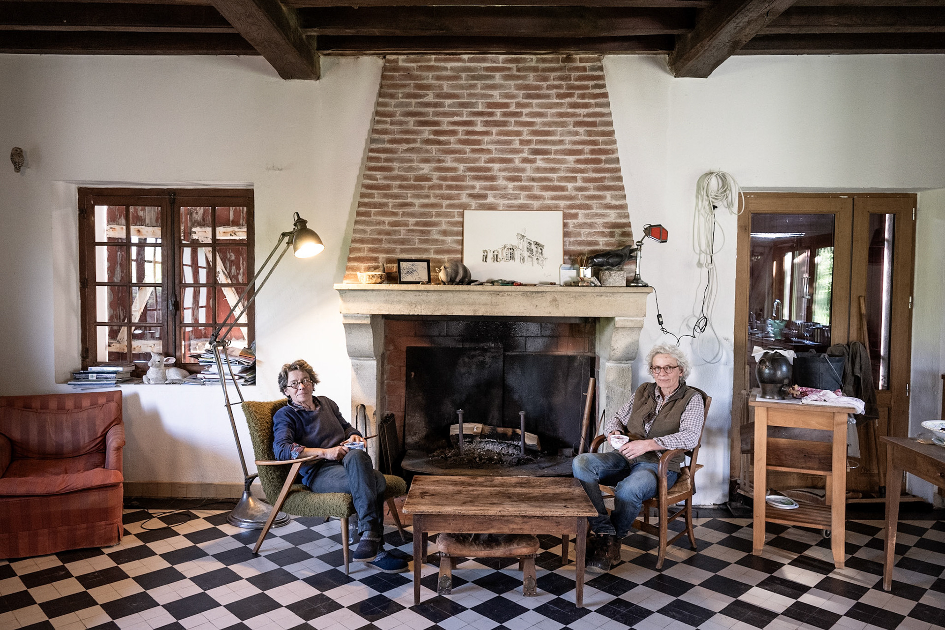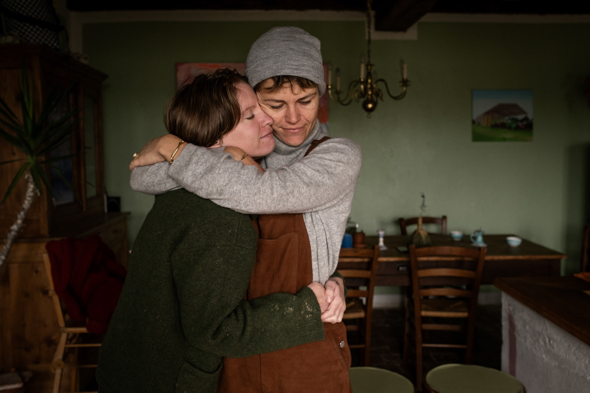 ↗ Isabelle (à gauche) et Valérie, ensemble depuis plus de seize ans, élèvent des brebis dans l’exploitation familiale reprise par la première il y a quarante ans. Cérilly département de l'Allier en région Auvergne-Rhône-Alpes.