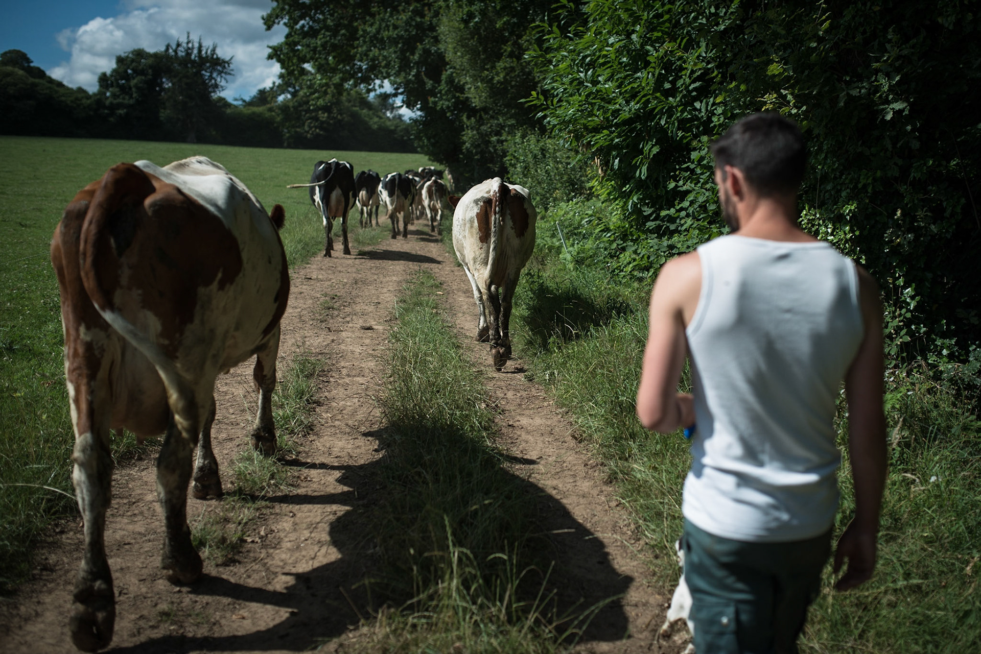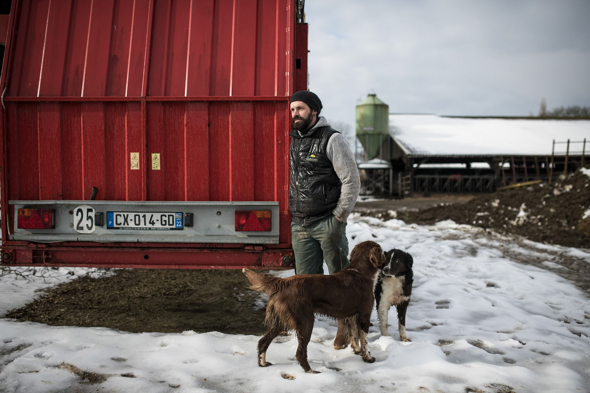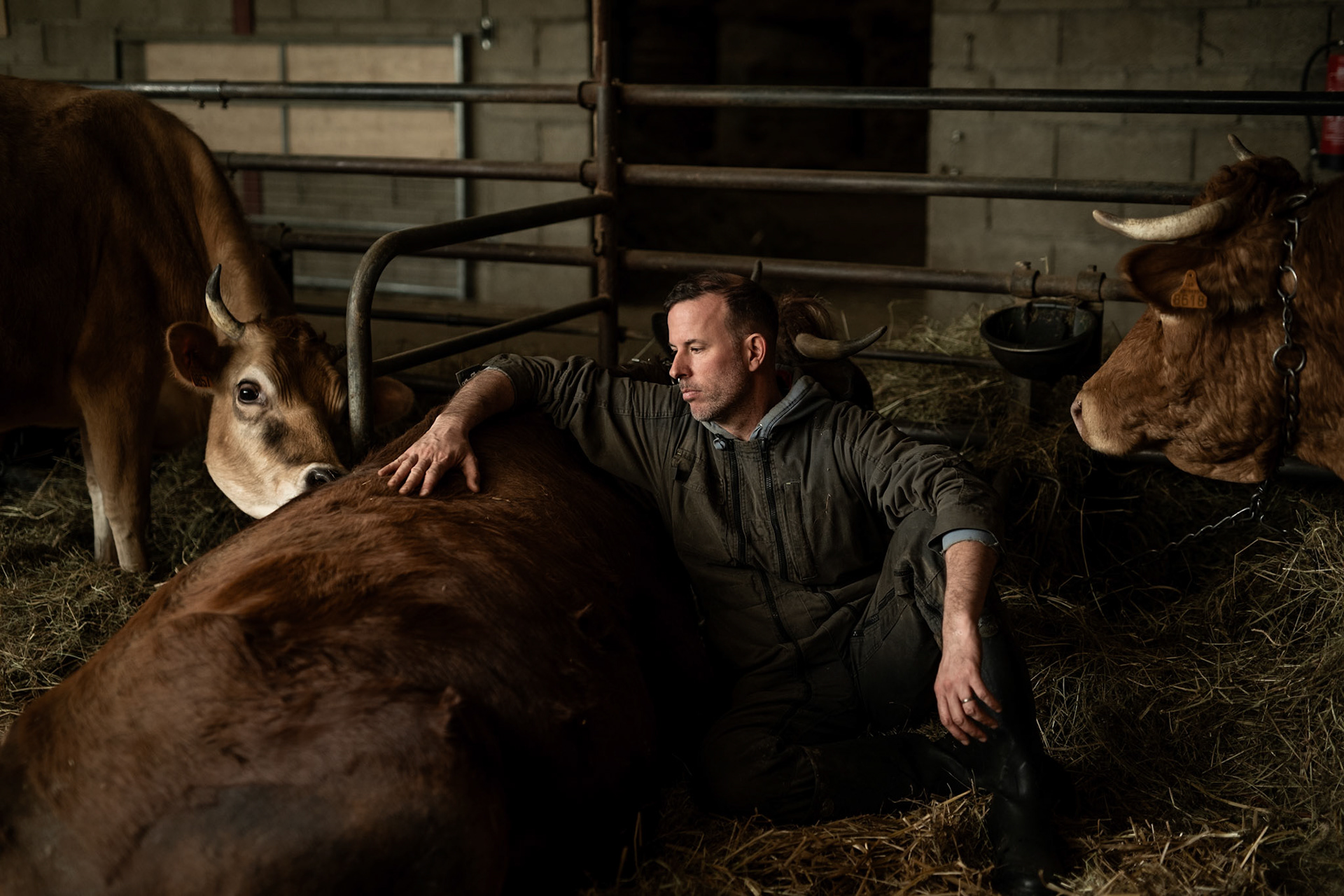 Pascal a repris l'exploitation laitière de ses parents en Bretagne près de Guingamp. Il travaille seul et reçoit parfois l'aide de sa famille ou d’un apprenti pour s’occuper d’une centaine de vaches, principalement des montbéliardes. J’ai débuté cette série en 2016 et les dernières images datent de décembre 2023.