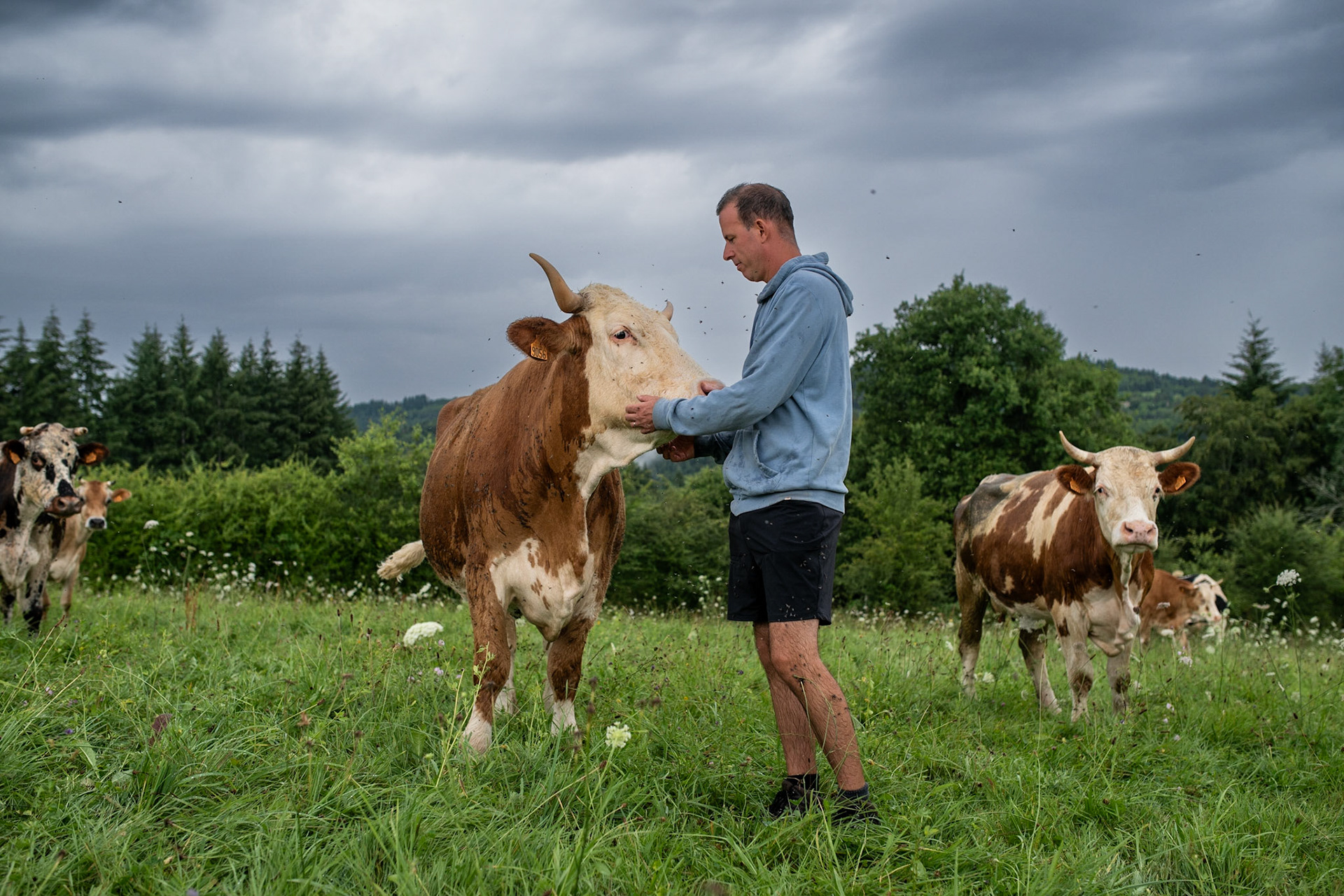 Philippe est l'un des 7 derniers éleveurs de Salers à la traite. Il travaille avec ses trois enfants. Il a toujours vécu ici, dans la maison de ses grands-parents dont il s’est occupé jusqu’à leurs morts. Saint-Etienne-de-Chomeil, Cantal en région Auvergne-Rhône-Alpes.