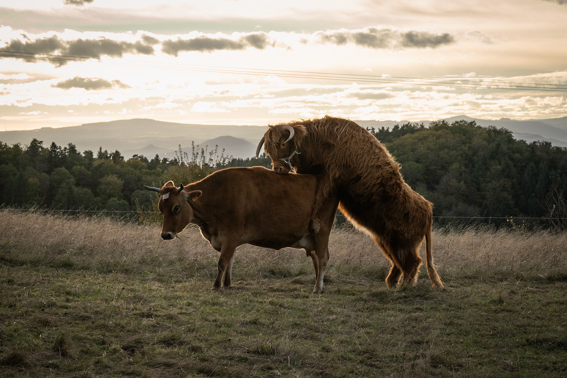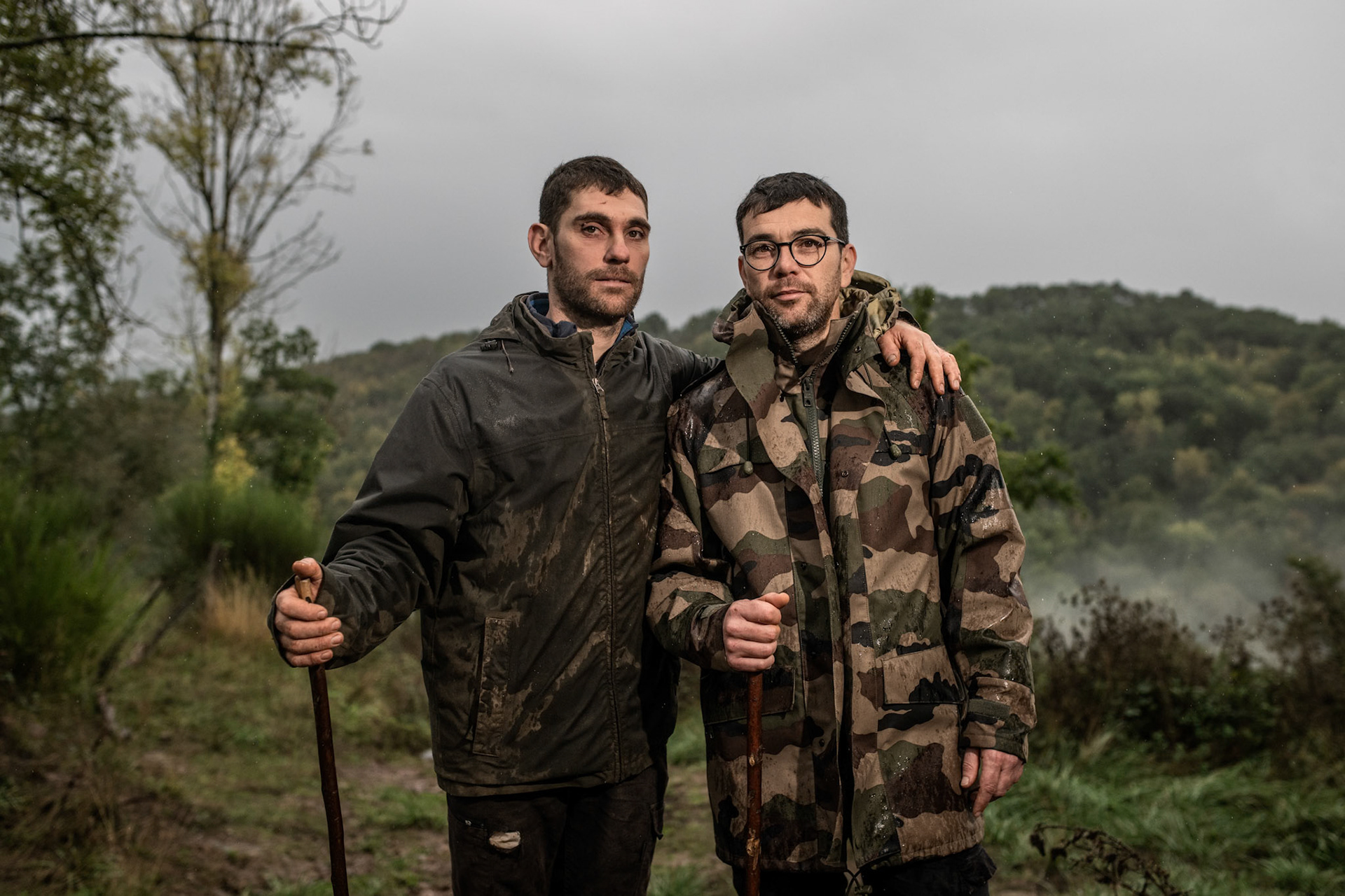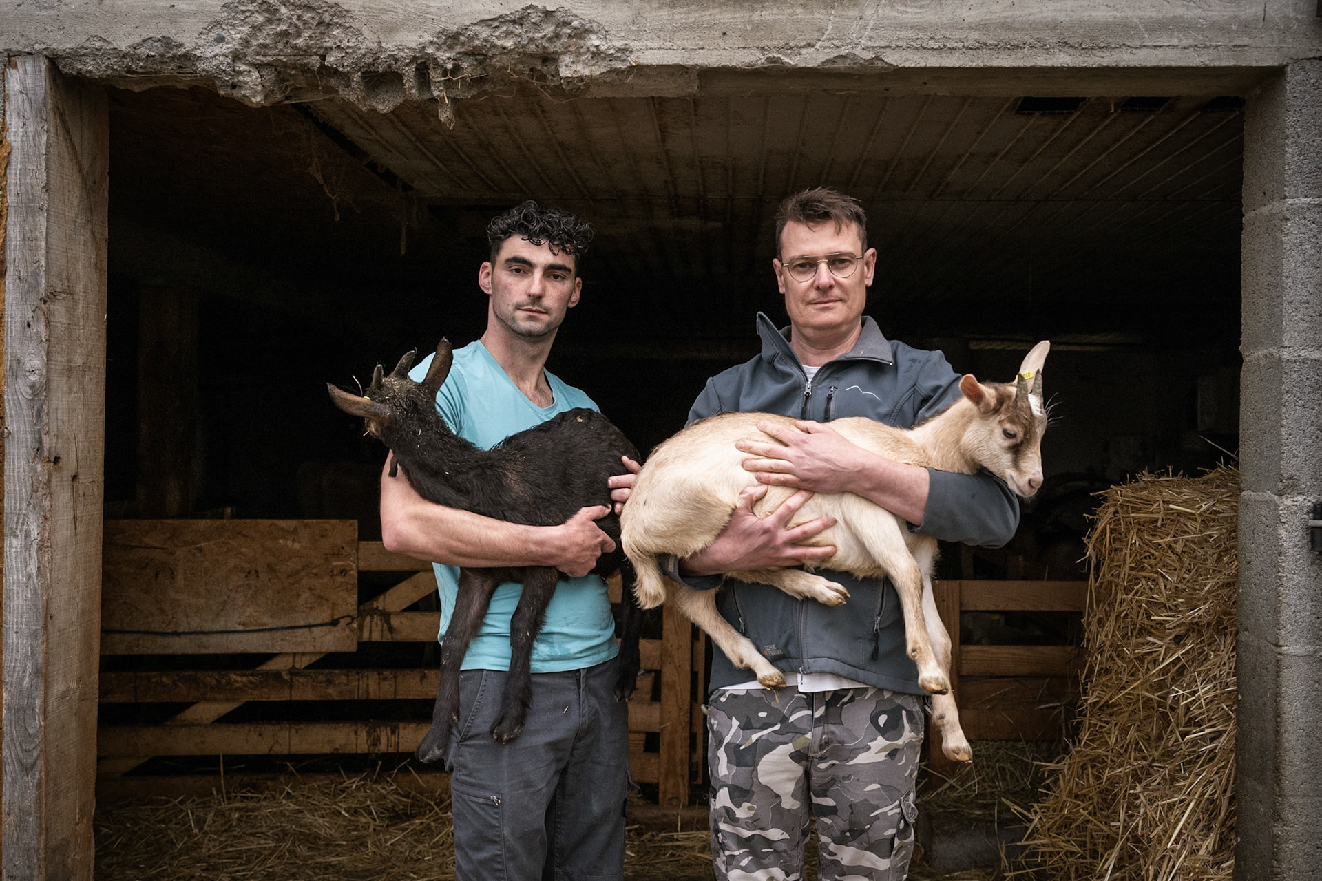 Adrian (à gauche) est né à Rodez. Dès qu’il a pu, il est parti étudier et travailler ailleurs, poussé par « le besoin de découvrir autre chose » et une « recherche d’identité ». En 2009, il est revenu pour reprendre la ferme de ses grands-parents. Ex-gendarme, d’origine bretonne, Sébastien s’est reconverti après sa rencontre avec Adrian en 2015, « par amour, mais la région [lui] plaît bien aussi ».