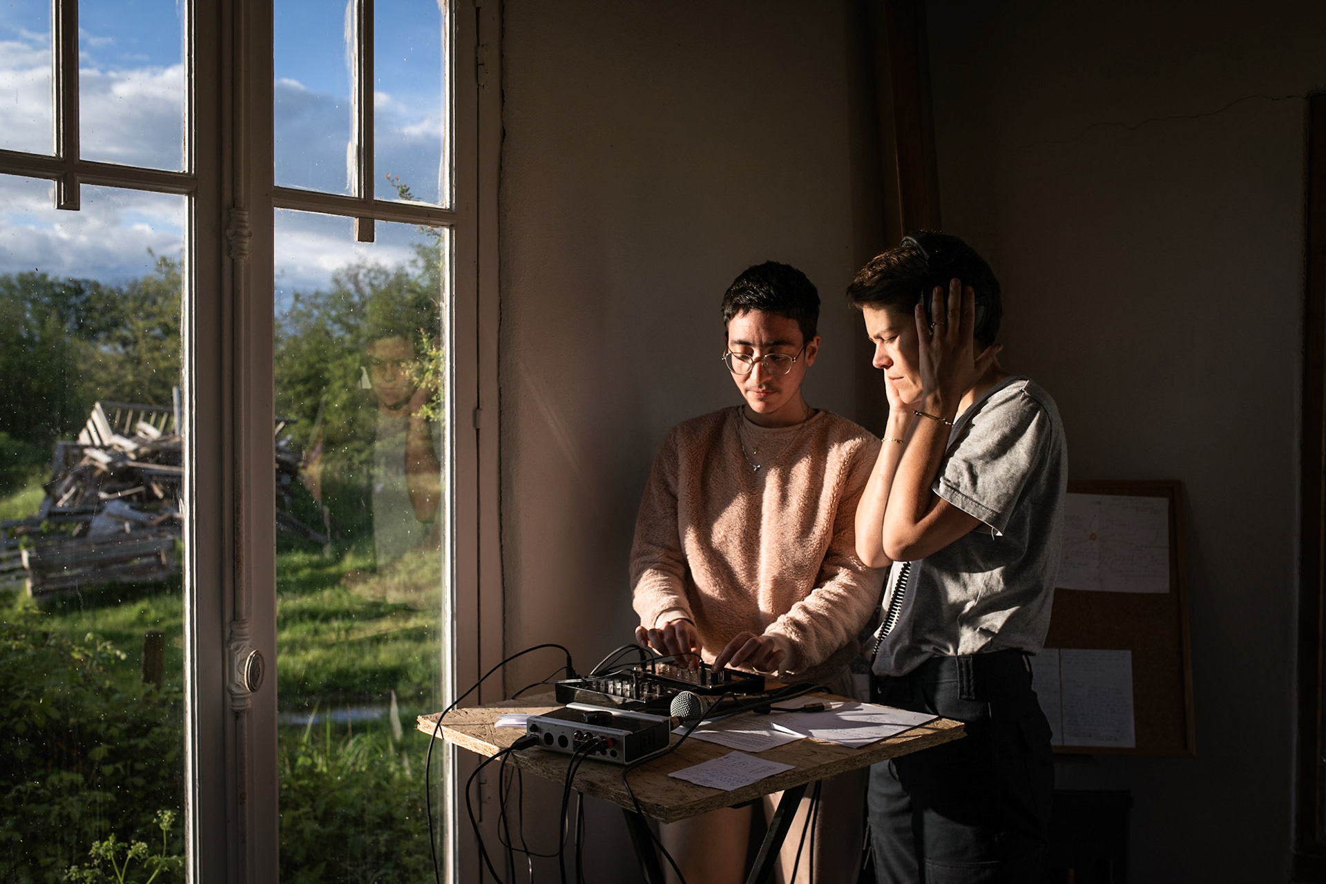 Codirectrice de l’association culturelle Polymorphe corp., Bony vit à Cérilly, dans l’Allier, avec sa compagne Johanna, une artiste allemande. En 2017, deux éleveuses de brebis, Isabelle et Valérie (en photo dans le bloc suivant), ont proposé à Bony d’accueillir sa structure au sein de leur ferme. Elle n’aurait jamais envisagé de s’installer à la campagne sans ce projet fondé avec des amix. Elle voit aujourd’hui son nouvel ancrage comme « un engagement à long terme » pour porter le message que « l’avenir est à la campagne ». Des artistes sont invités en résidence comme Amarin, musicien, en bas du bloc d'images.