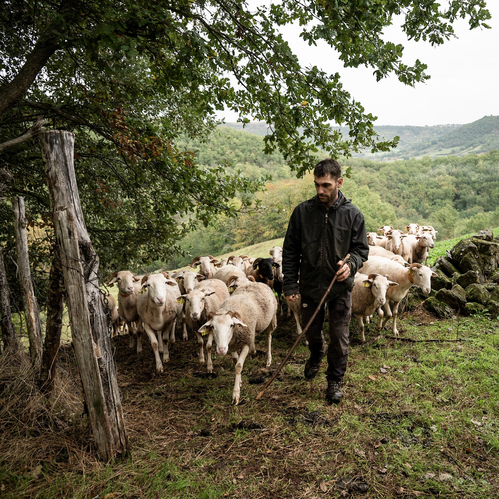 Les « contraintes topographiques » du territoire aveyronnais où Adrian et Sébastien, en couple, élèvent des brebis pour leur viande, guident leur manière de travailler hors d’une logique productiviste. « Pour l’avenir de la ferme, il faut plutôt se concentrer sur la vente directe et la diversification », estime Adrian.