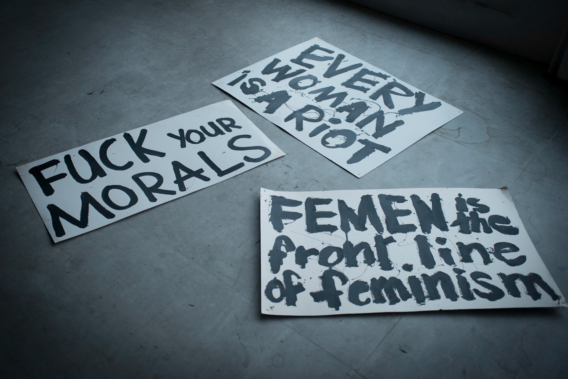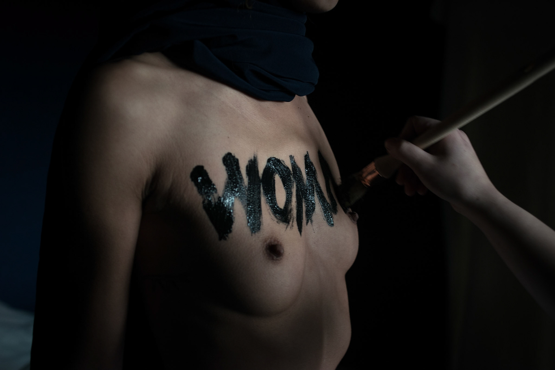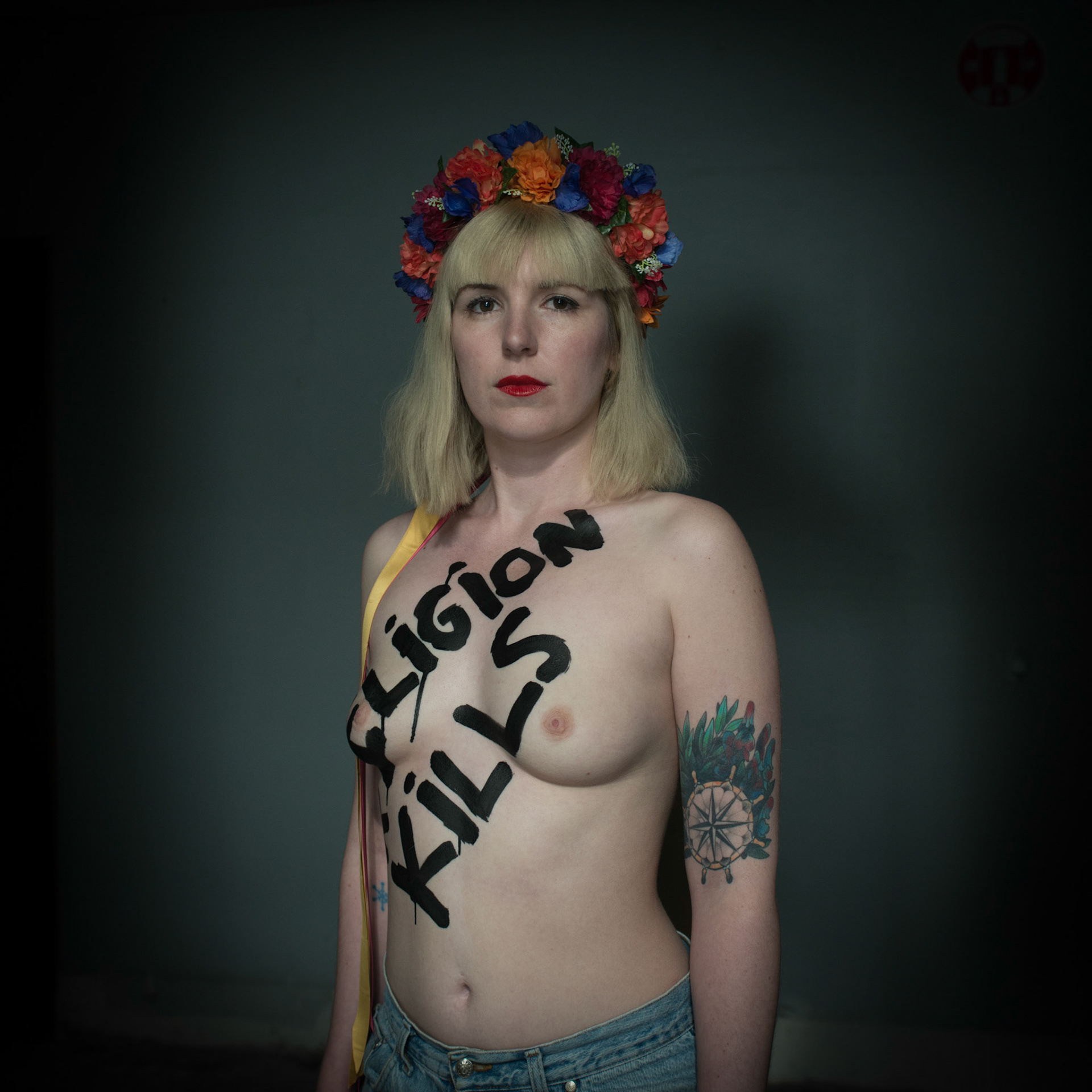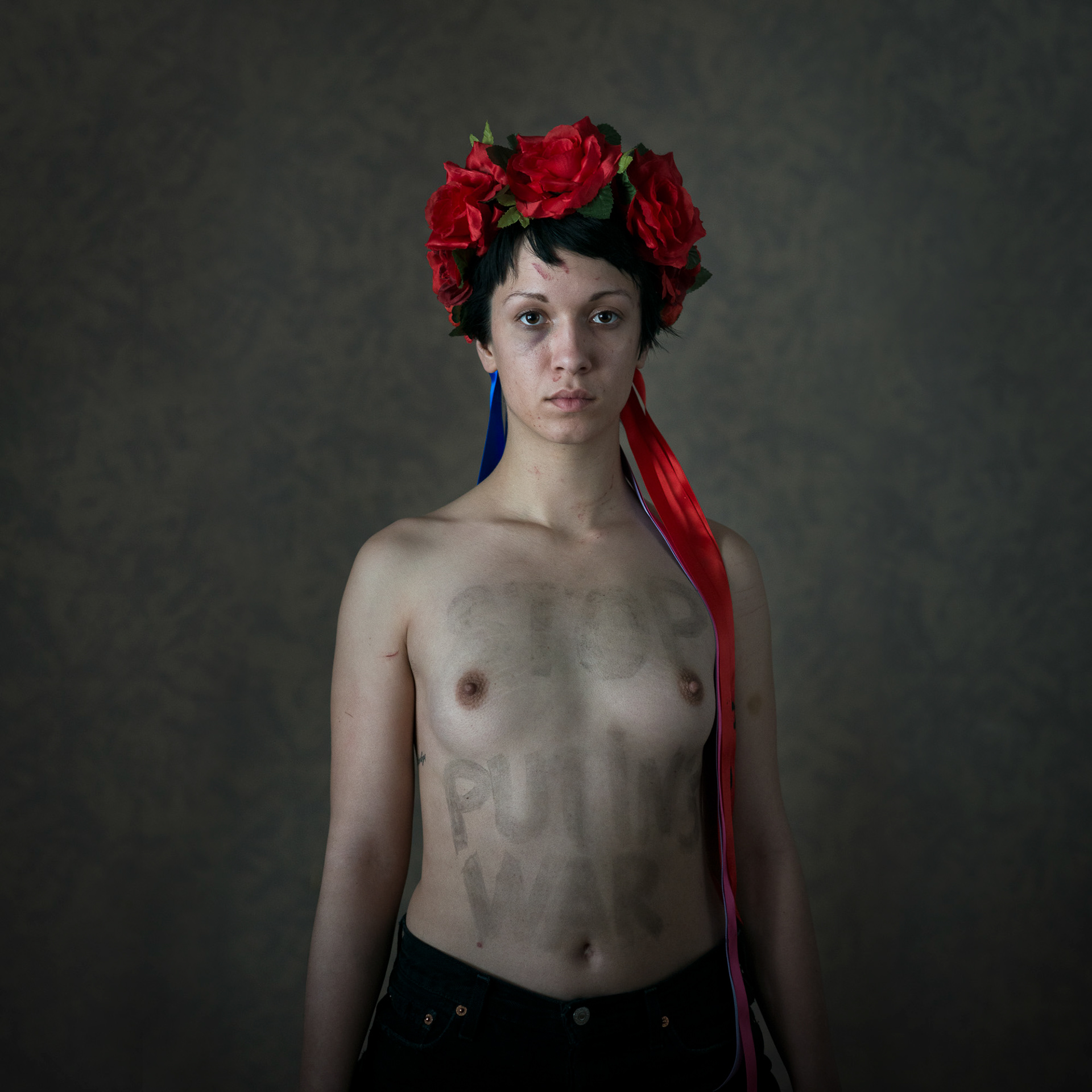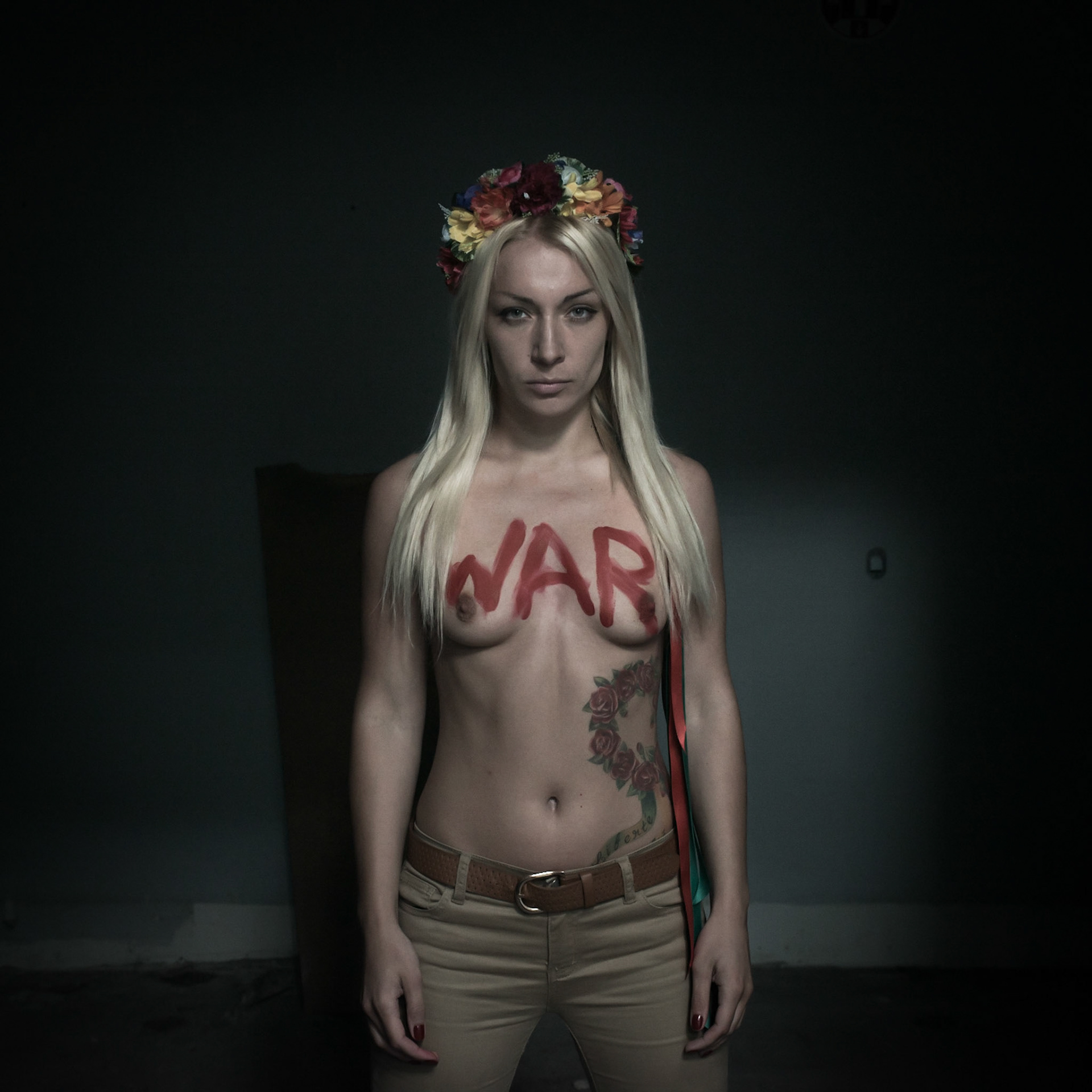 En 2014 et 2015, j’ai réalisé des images des FEMEN dans leur QG, des portraits, des détails, mais aussi des scènes de préparation et de repos …