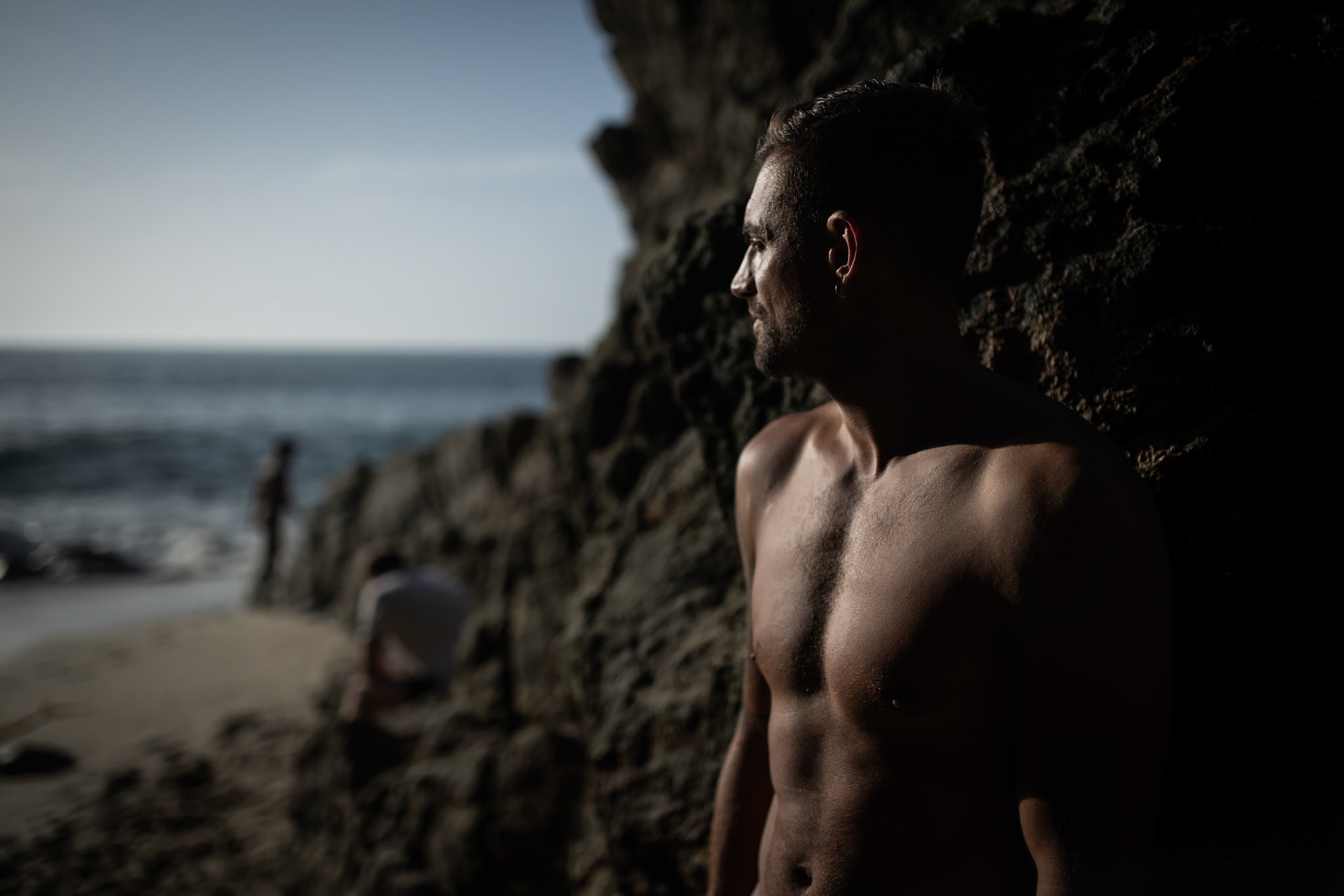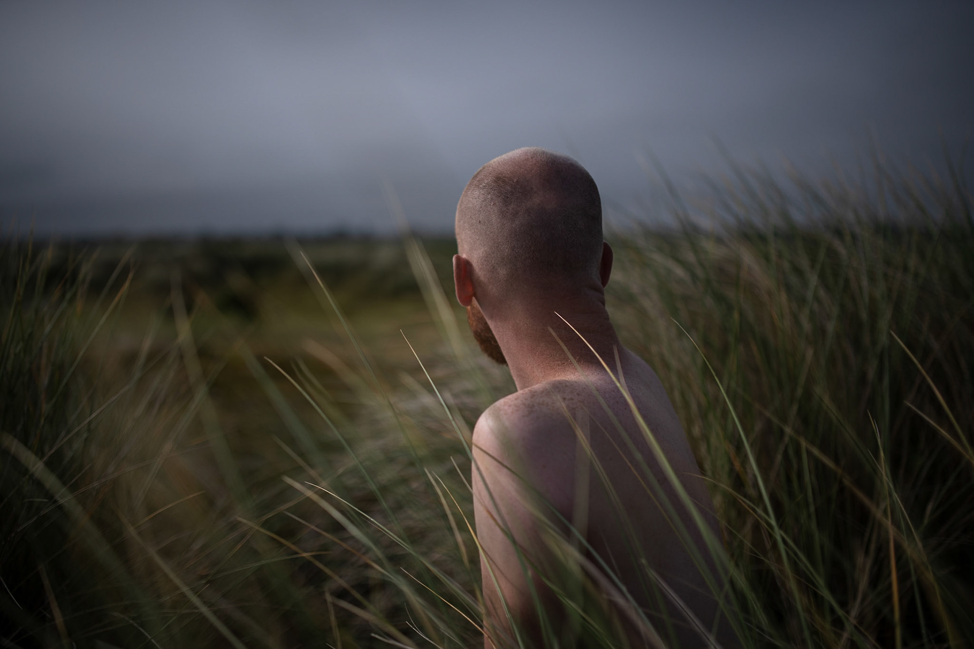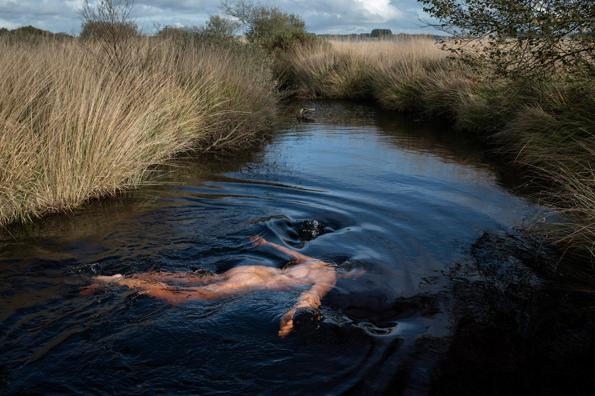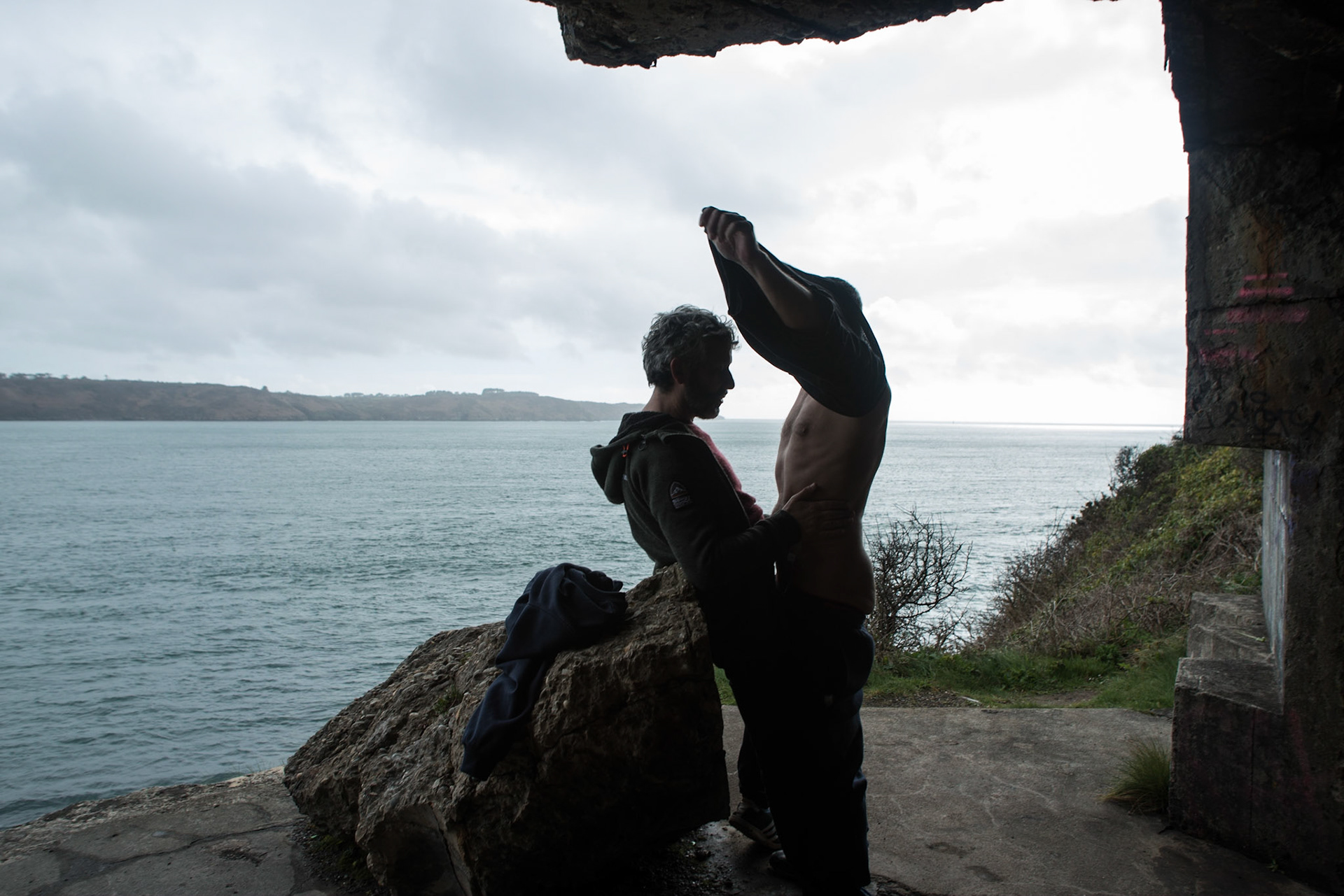 «Le parking à proximité du bois est très actif, surtout à la tombée du jour. Les voitures vont et viennent, hésitent, repartent, reviennent. On entend crisser les pneus, on est éblouis par les phares. Pendant ce temps, les chiens placides attendent. Parfois, ce sont des hommes mariés qui prétextent leur promenade pour pouvoir venir sur les lieux de drague.» Au printemps 2017, l'association brestoise LGBT+ Divers genres propose à Vincent Gouriou un projet sur les lieux de rencontres extérieures masculines, dans le cadre d'un programme de prévention sur les risques du VIH. Le photographe, carte blanche assurée, suit quelques maraudes et s'imprègne de l'ambiance. Rapidement, il est confronté à un paradoxe : comment représenter ces hommes qui font tout pour se rendre invisibles ? Il choisit alors de mettre en scène des volontaires pour réaliser un travail plus personnel. «Ce parti pris me permettait également de développer toute la force d'un imaginaire nourri de littérature et de cinéma.» Il y a évidemment la tension érotique de l'Inconnu du lac, d'Alain Guiraudie, dans ce que le film explore d'attirant autant que d'inquiétant. Le bois et l'eau y sont l'écrin sublime de l'aspect primitif du désir. Mais il y a aussi le livre Querelle de Brest, de Jean Genet, intrigue de marins qui tour à tour se battent et s'offrent dans l'univers interlope du port breton. Ce profil adossé à une cabane de pêche, qui attend client ou amant, exalte un peu du personnage de Georges Querelle, pour qui le rapport sexuel est le moyen de s'élever à une noblesse intime. Gouriou sort les lieux de drague d'un obscur refoulé et leur dessine une majesté lumineuse et sauvage.