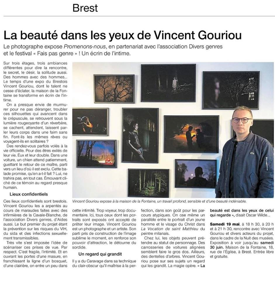 19 mai 2017 - Ouest-France / Texte de Dominique Cresson sur l'exposition "Promenons-nous" à voir jusqu'au 30 juin à la Maison de la Fontaine à Brest, en partenariat avec l'association DIVERSGENRES