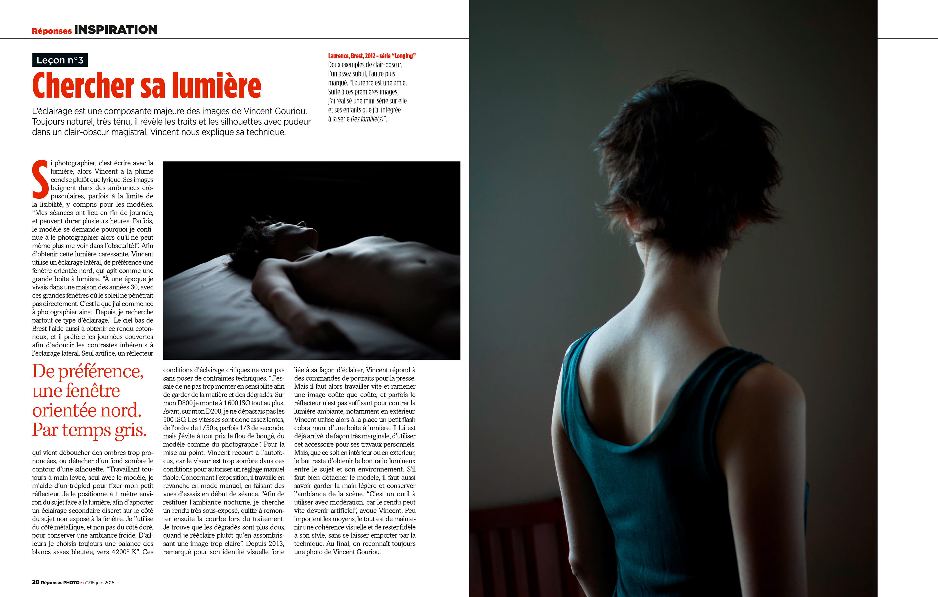 Mai 2018 : En couverture du magazine Réponses Photo du mois de juin 2018 avec un dossier de 14 pages dans la rubrique "Inspiration" - à l'occasion de mon expo solo parisienne / Galerie David Guiraud